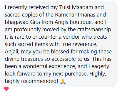 Ramayan, Gita ji and Tulsi pot for her house in the US